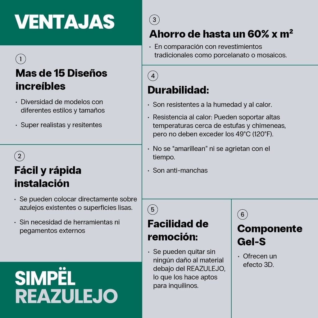 Para calcular cuántos azulejos 3D autoadhesivos necesitas deberás tener en cuenta que en cada caja vienen 10 azulejos equivalente a 0,9 m².